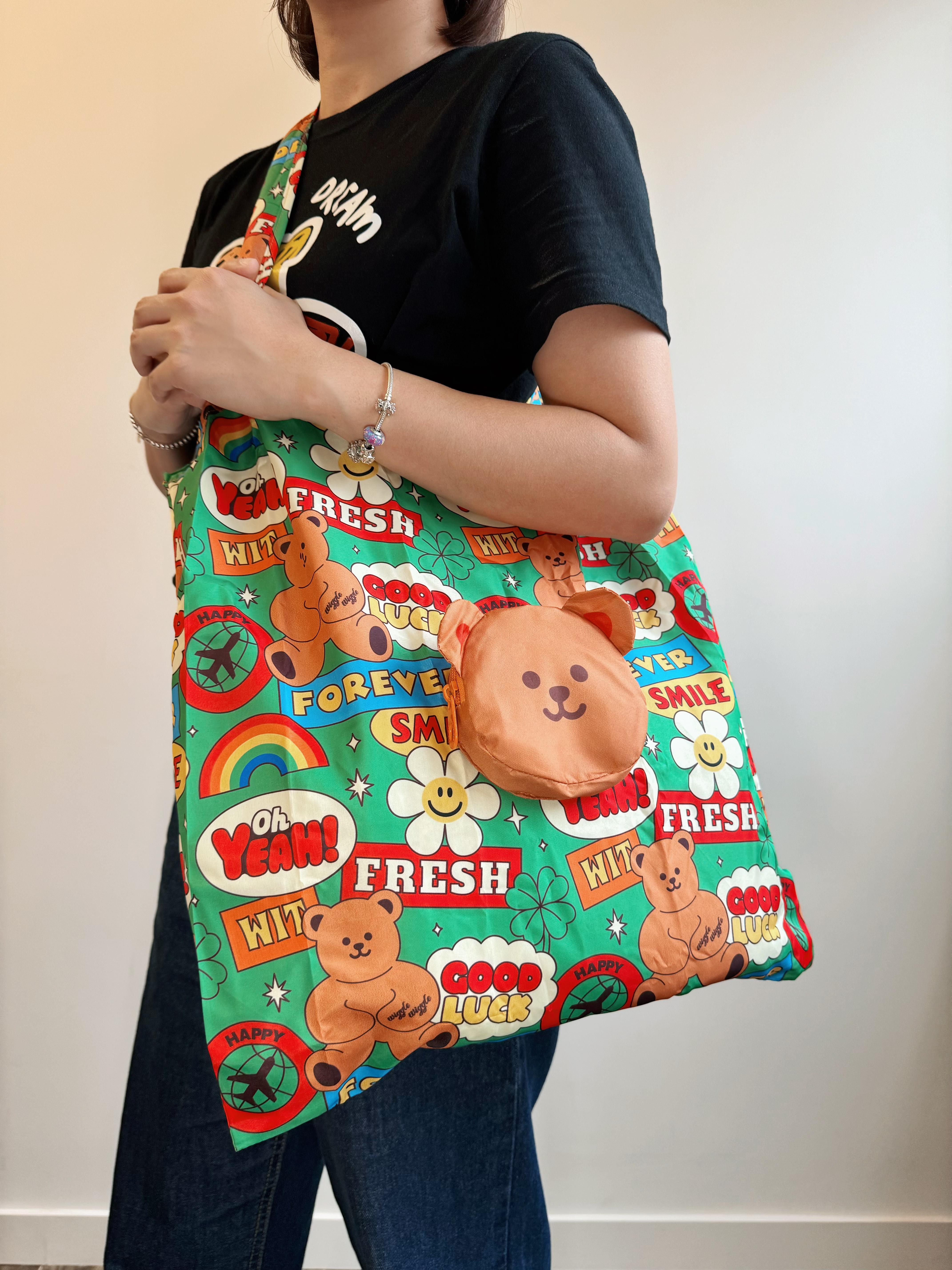 - 不使用環保袋時,可折疊起來作為迷你包存放。